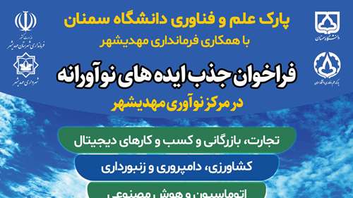 فراخوان جذب ایدههای نوآورانه در مرکز نوآوری مهدیشهر