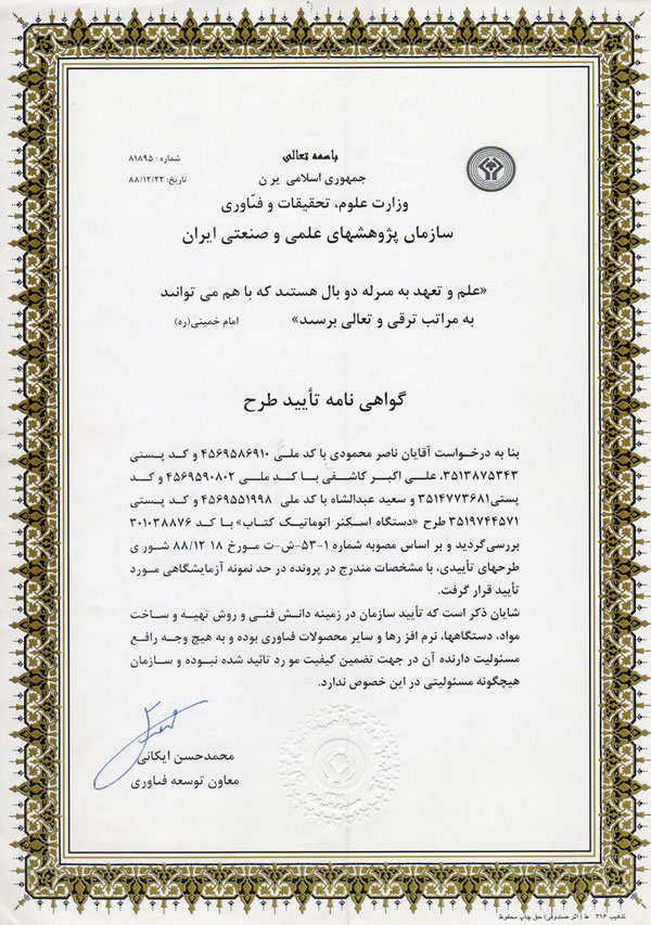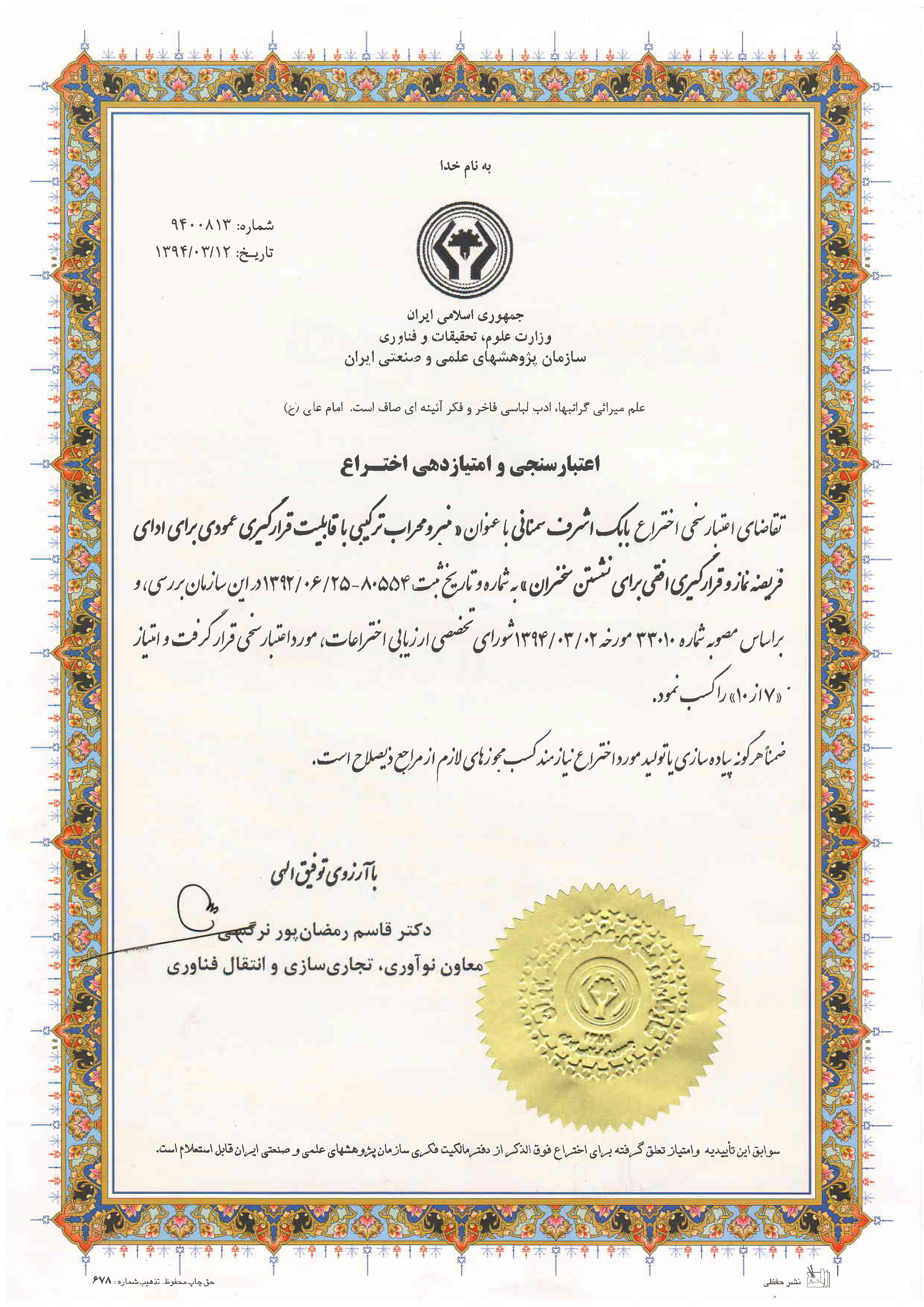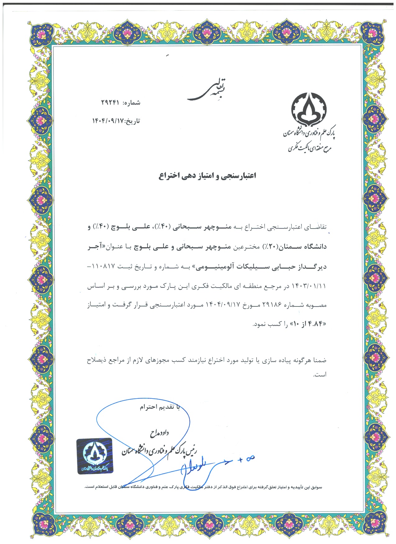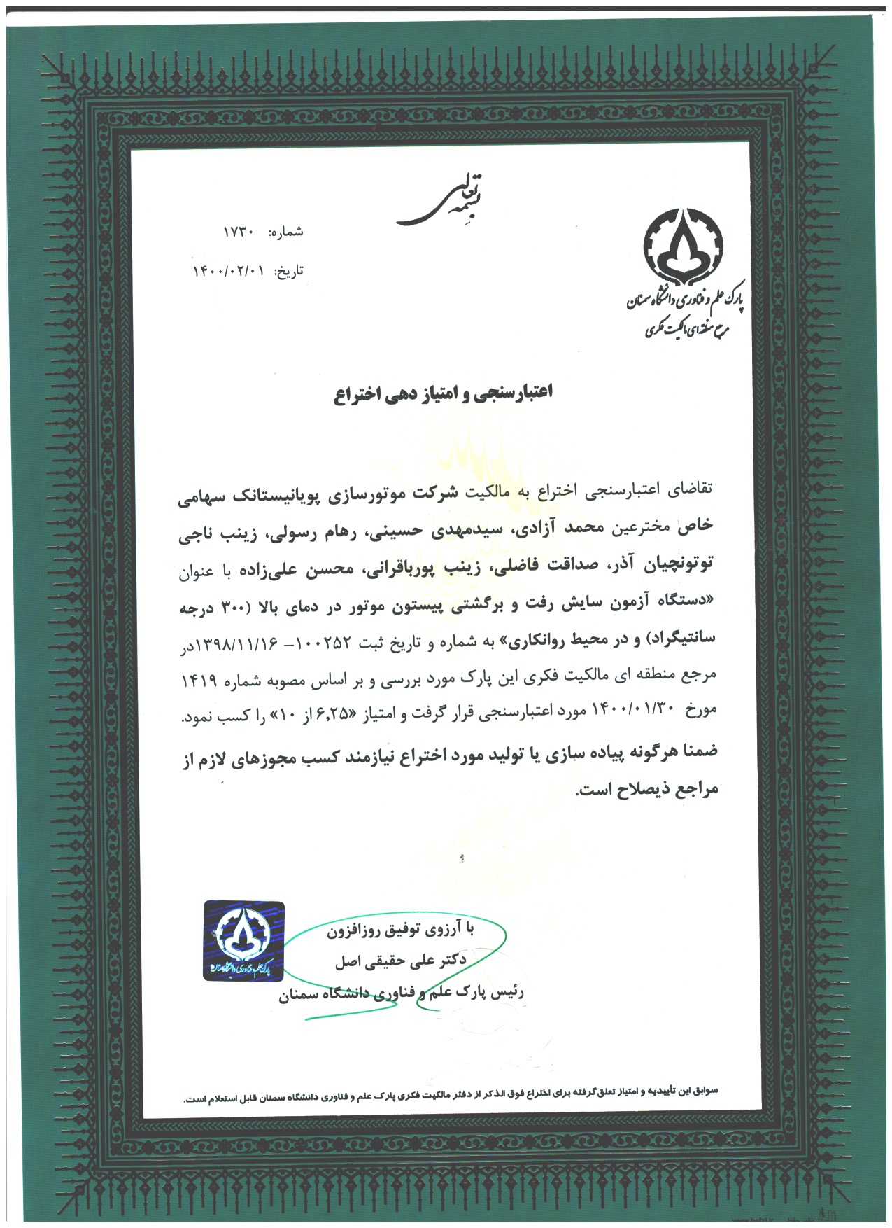 تأییدیه های علمی اختراع متعلق به «پارک علم و فناوری» و «دانشگاه سمنان»