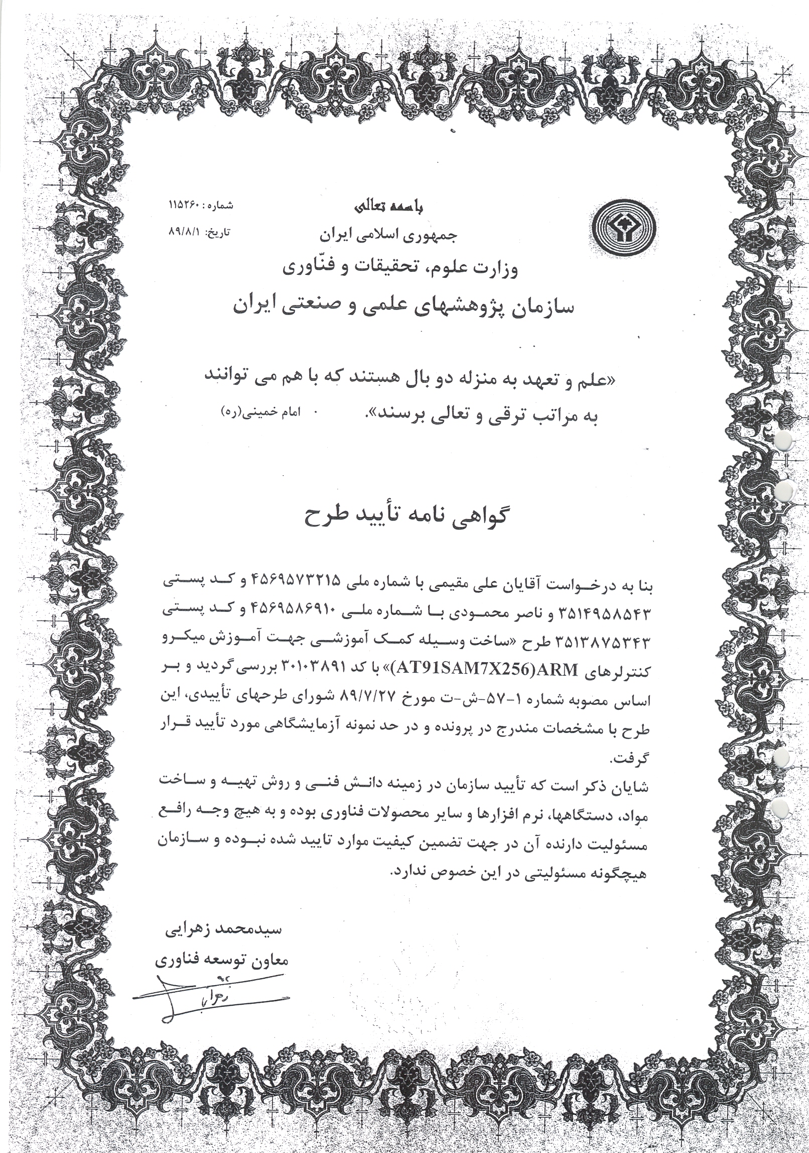 محمد براق جم ، ساناز علمداری، پارک علم و فناوری دانشگاه سمنان ، مجید جعفرتفرشی و مرتضی ساسانی قمصری |